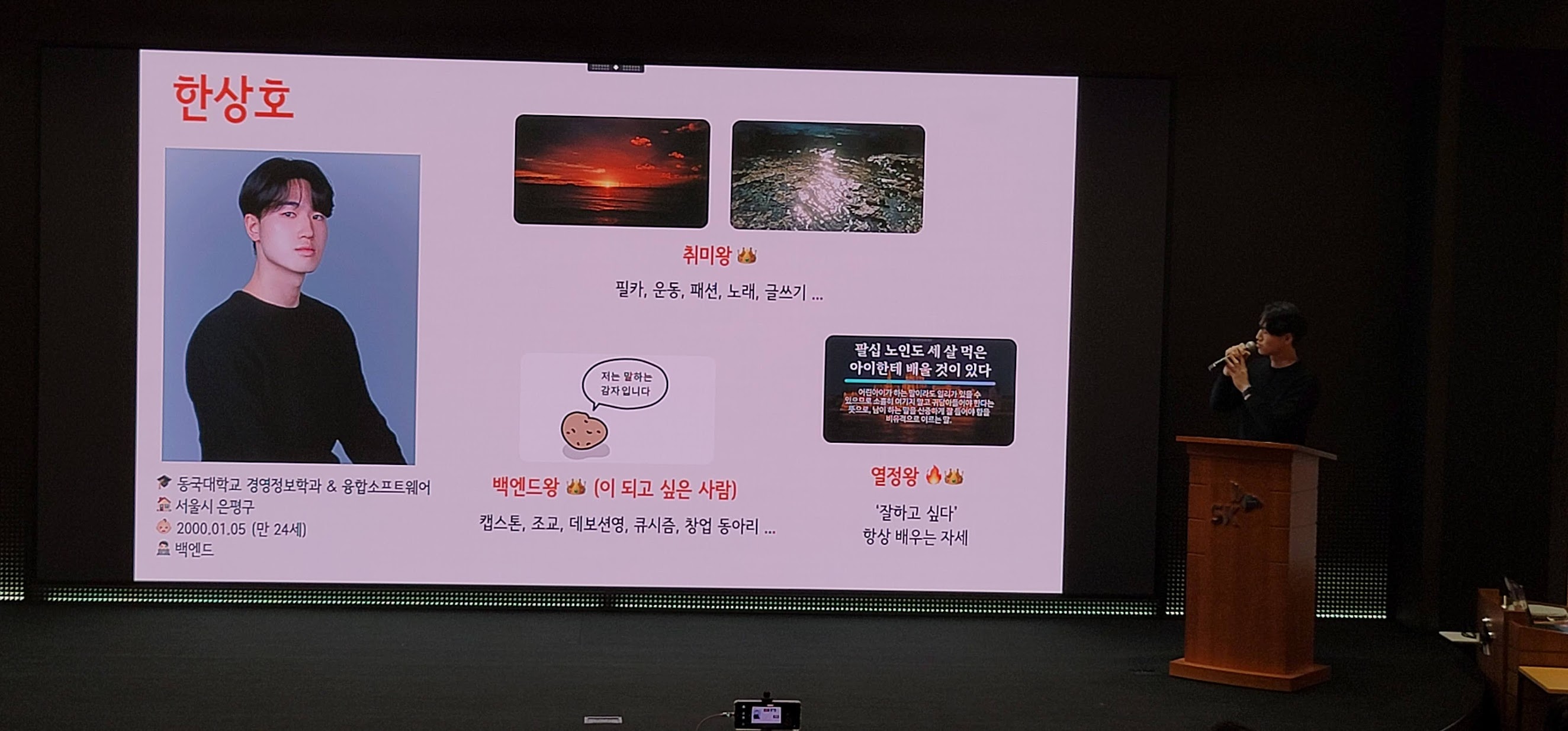 나는 간단하게 3가지 키워드를 중심으로 자기소개를 진행했다.