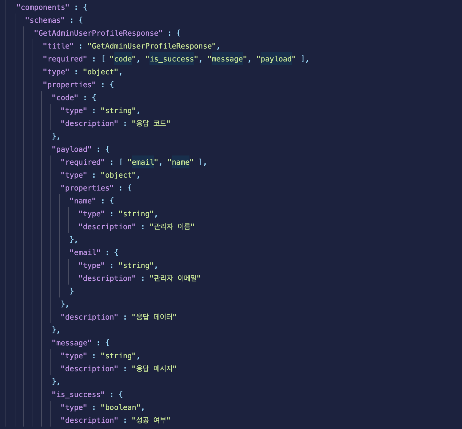 해당 에러 때문에 스키마가 적용이 되지 않아서 필드들의 세부적인 설명을 확인할 수가 없었다.