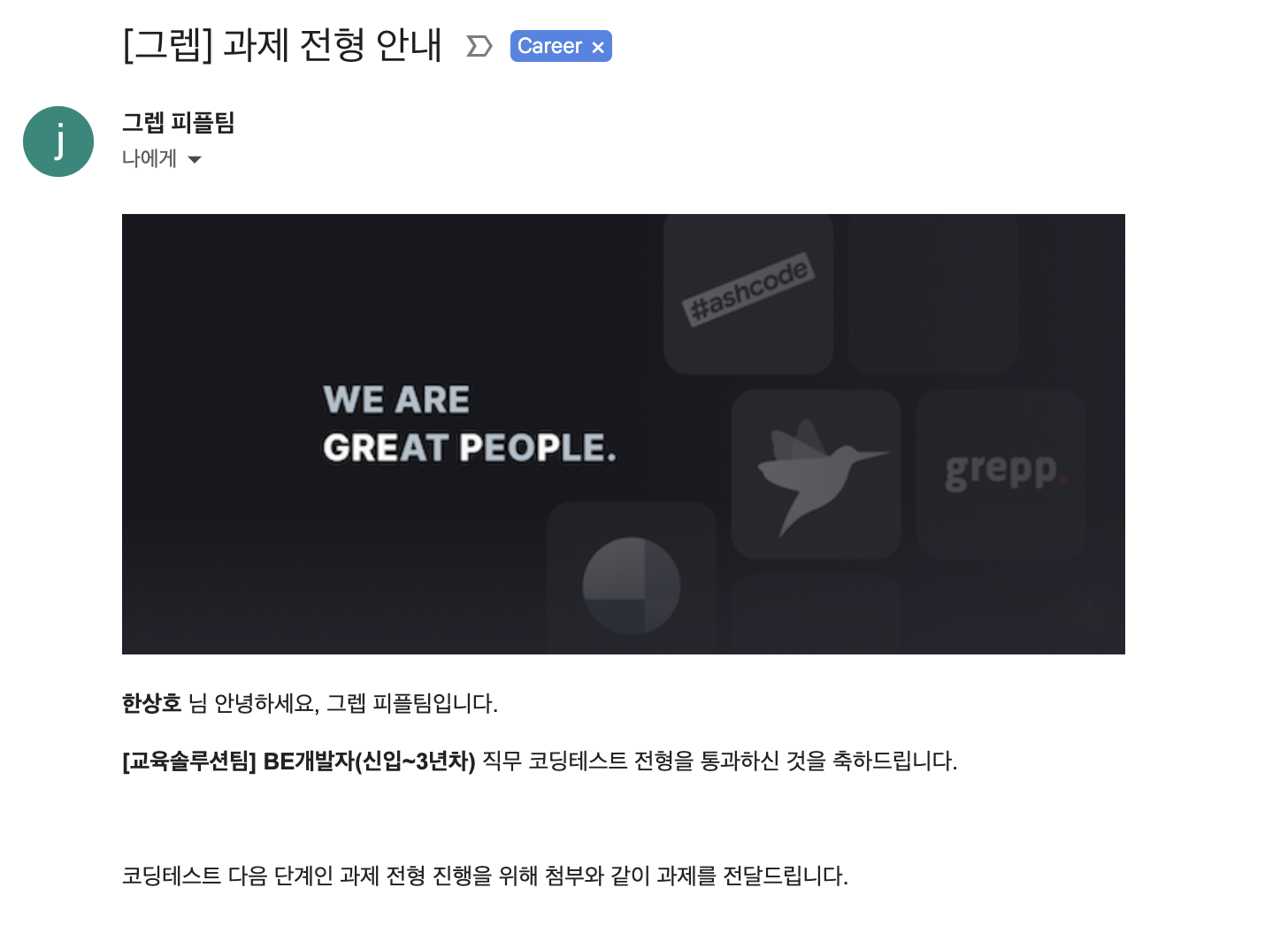 그렇게 일주일이 지나 3월 19일이 되었다. 별 생각 없이 취업 준비를 바쁘게 하고 있었는데, 서류가 합격했다는 메일을 받게 되었다!